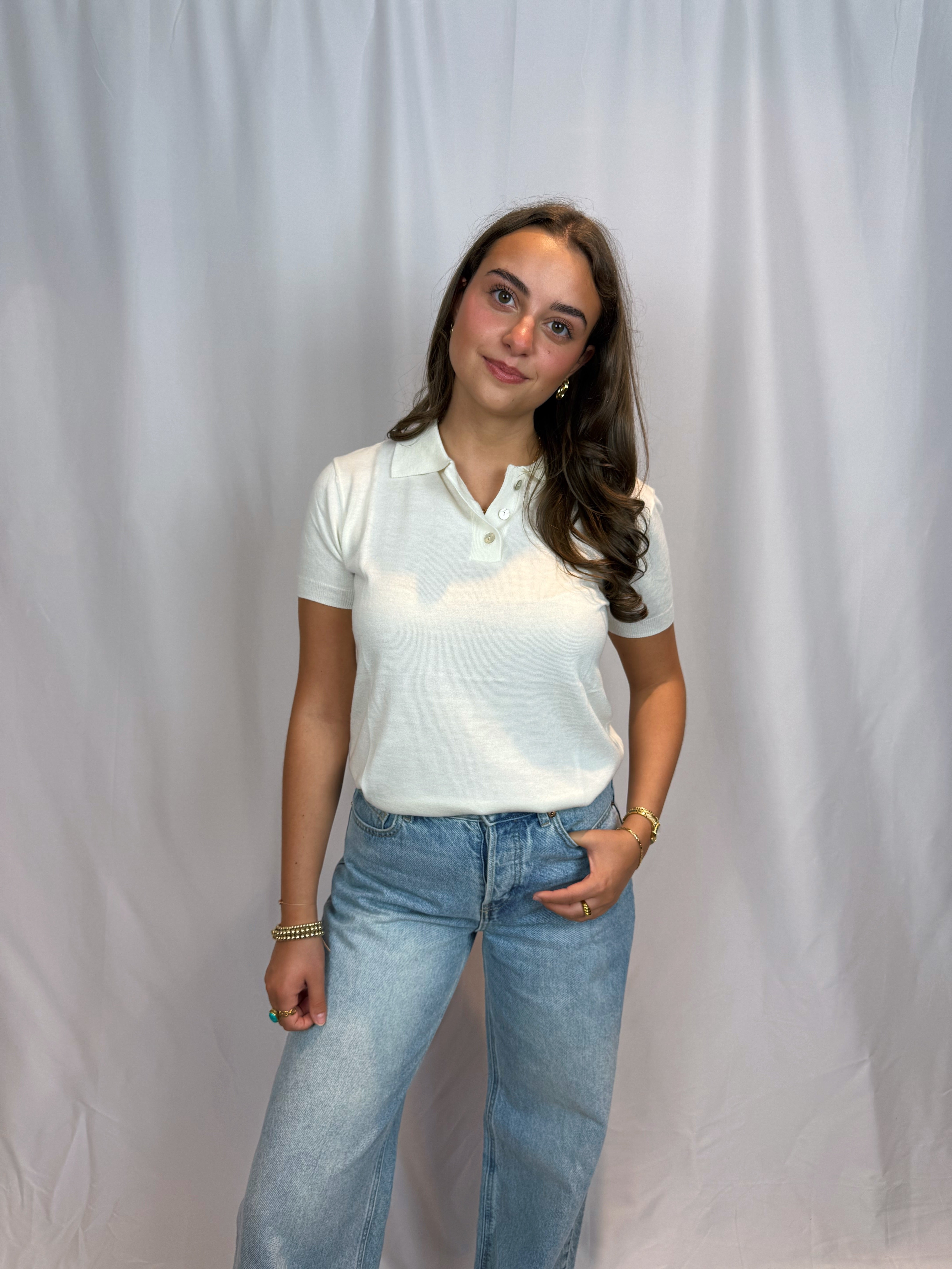 Margot Collared Short Sleeve Knit Top